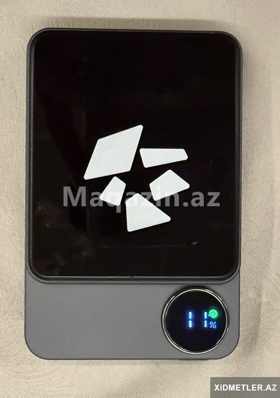 Maqnitli simsiz enerji bankı – loqolu. Xüsusiyyətlər:. - Akkumulyator tutumu: 500 mAh (3.85 V / 19.25 Wh). - Daxil olan kabel: USB-A → USB-C. - Çıxış gücü:. - Simsiz şarj: 5 W / 7.5 W / 15 W. - PD sürətl [читат далше]