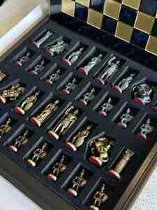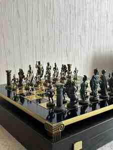 Zərif hədiyyə və kolleksiya üçün premium səviyyəli dəst. Dizayn və işləmə detalları yüksək keyfiyyətlidir, fiqurlar sütun formalı və antik motivlərlə hazırlanıb, lövhə ilə harmonik uyğunluq yaradır.