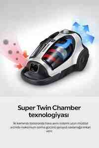 Bu model 2200 Vt istehlak gücü və 430 Vt yüksək sorma gücü ilə ən xırda toz hissəciklərini belə effektiv şəkildə təmizləyir. Super Twin Chamber texnologiyası sayəsində sorma gücü uzun müddət sabit qalır və filtr sistemi daha az çirklənir.
