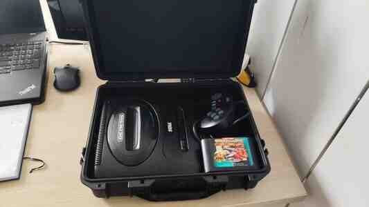 Orijinal Sega Genesis-dir, Amerikan variantı. Konsolun sxeması metal qoruyu örtüklə təchiz olunub. Ağır konsoldur, bilənlər başa düşəcək.