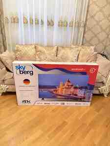 Teze (upakovka) 140 sm genis ekran,2025 son model en son seria,Almaniya brendi Sky berg Smart televizor Premium modeldi,4 K UHD en yuksek goruntu kefiyyeti Manalit ekran (cercivesiz) Cox Nazik ince (ultraslim) modeldi