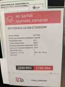 1079 Azn LG Soyuducu GR-B642PGFK LG SOYUDUCU Birkart kecerlidir Edv qebz verilir Resmi zemanet verilir Köçürmə ilə satış var. Malın növü: Soyuducular Yeni: Bəli Çatdırılma: Bəli