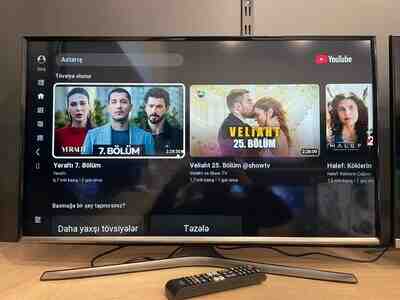 500 Azn Televizor ideal vezyetdedi 4K desdekleyir youtube netflix hamsı var cox nazik ince televizordu Malın növü: Televizorlar Marka: Samsung Ekran növü: LED Ekran icazəsi: Ultra HD (4K) Diaqonal: 124 sm (49") Smart: Bəli