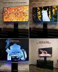 Premium Dizayn: Geniş ekran, nazik metal çərçivə və sabit U-şəkilli metal dayağı sayəsində hər otağa minimalist və zərif görünüş gətirir. Həm divara asmaq, həm də dayaq üzərində yerləşdirmək mümkündür.