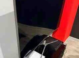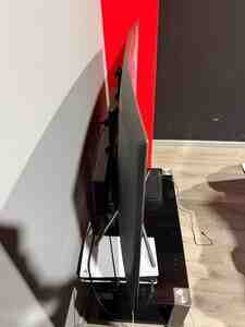 1399 Azn TV və TV altlığı dəsti Təcili satılır real alıcıya endirim - Ekran: təxminən 55–60 düym düz ekran LED TV - Rəng: qara korpus, incə çərçivə - Quraşdırma: masaüstü ayaqları ilə - Qoşulmalar: arxa/yan hissədə çoxsaylı