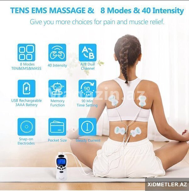 - TENS/elektrik impuls masajı prinsipi ilə işləyir; əzələ stimullaşdırması və rahatlama üçün nəzərdə tutulub.