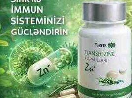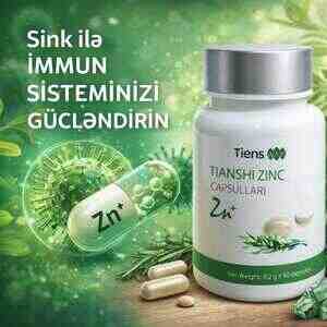 Tiens Tianshi Zinc Capsules (Zn⁺) orqanizmdə sink çatışmazlığının qarşısını almağa kömək edən keyfiyyətli qida əlavəsidir; immun sisteminin güclənməsini, dəri, saç və dırnaqların sağlamlığını dəstəkləməklə yanaşı, testosteron səviyyəsinin normal saxlanmasına kömək edərək kişilərdə cinsi zəiflik, halsızlıq və libido azalmasının qarşısının alınmasına dəstək verir, reproduktiv sağlamlıq, sperma keyfiyyəti və enerji səviyyəsinin yüksəldilməsinə töhfə göstərir, kapsul formasında rahat istifadə olunur və 60 kapsuldan ibarətdir.