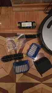 - Komplektasiya: baza/şarj stansiyası və adapter, virtual divar modulu, ehtiyat NiMH akkumulyator (14.4V, 4.4Ah Tattu), əlavə əsas fırçalar (silindrik və rezin), yan üçlü fırça, bir neçə HEPA/ince filtr, fırça təmizləmə aləti