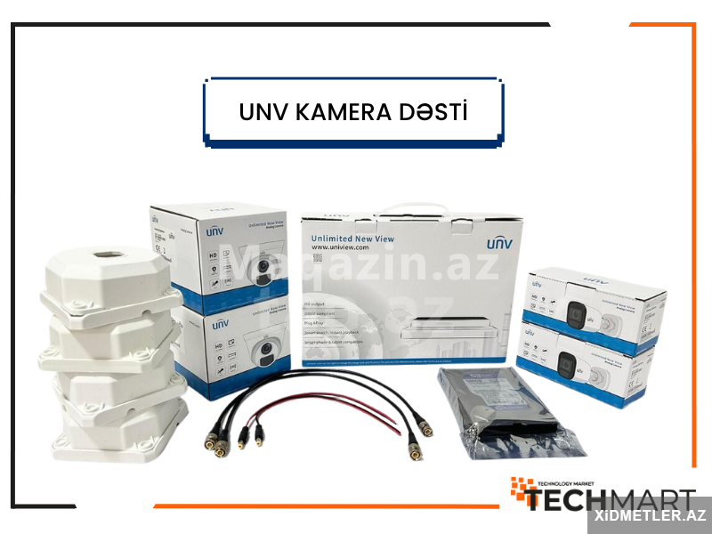 UNV (Uniview) kamera komplekti yüksək keyfiyyətli görüntü və geniş əhatə imkanları ilə təhlükəsizliyi etibarlı şəkildə təmin edir. Gecəgörmə, hərəkət aşkarlama və ağıllı analiz funksiyaları sayəsində hadisələri dəqiq izləmək mümkündür. Asan quraşdırılan sistem mobil tətbiq üzərindən uzaqdan idarəetmə və canlı görüntü imkanı verir. Müştəri üçün həm stabil, həm də müasir texnologiyalı təhlükəsizlik həllidir.
