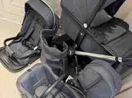 810 Azn Əla model əkiz uşaq arabası Yat, otur və istirahət et Körpənin ana südü ilə daşınması üçün ön və arxa dəstək Uşağınızı günəş şüalarından qorumaq üçün kölgəlik Təkərlər 360 dərəcə fırlanır Bağlamaq və açmaq