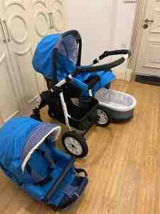 180 Azn Hec istifade olunmayıb,polşaistehsalıdır,4 amartızatoru var,tekerlerı dolandır deye cox yumsaqdır,elave olaraq usaq daşıma çantası,yay ve qış rejımı,yagıs ucun uzerının klyonkası ve agcaqanad ucun ustunun toru bır sozle
