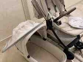 Kidilo 2 ədəd uşaq arabası + qoşma (ekizler ucun nezerde tutulub) - Brend: Kidilo - Rəng: boz (qara şassi və qəhvəyi dəri effektli tutacaqlar) - Komplekt: 2 ədəd gəzinti tipli uşaq arabası və 3 ədəd birləşdirici