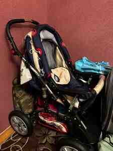 400 AznUşaq arabası dəsti – Adamex (şassi "Pajero"), 2-in-1 Xüsusiyyətlər: - Rəng: boz tekstil oturacaq/blok və qırmızı beşik bölməsi - Şassi: "Pajero" yazılı möhkəm metal konstruksiya, iri amortizasiya