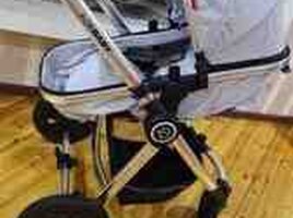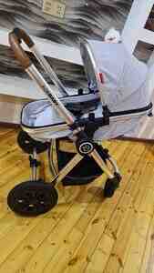135 AznBöyük ölçülü, iri təkərli, beşik kimi yelləmək imkanı, aşağısında əşyalar üçün yer və yığıka bilən uşaq arabası. İşlənmişdir, normal vəziyyətdədir.