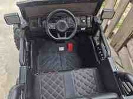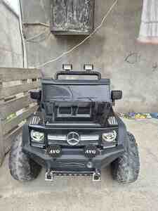 Off-road görünüşlü hündür iki nəfərlik,əlavə olaraq arxasında da bir nəfərin dura biləcəyi uşaq maşını.