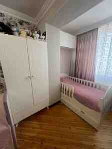 150 Azn Usaq destine moderndir ve aiddir 1m-in 2.20 ə yataği,destin her iki terefinde iki qapili dolabi,yaninda 1qapili dolabi ve calisma masasi.Yataginin turkiye istehsali olan doseyi de uzerinde satilir.Yataq desti ve uşaq