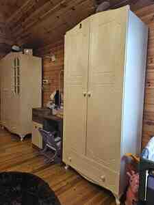 99 Azn Çox sərfəli təklif! Dəyərindən qat-qat ucuz verilir. Dəstin içərisində 2 yataq (döşəklə birlikdə), 1 kompüter və yazı masası, 1 ədəd böyük dolab (şifoner var). Mebel mdf, fanerka filan deyil, təmiz taxtadan hazırlanıb