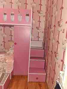 35 AznTəsvir: Çox yaxşı vəziyyətdə, modern dizaynlı uşaq yataq mebeli dəsti satılır. Keyfiyyətli materialdan hazırlanıb, rəngləri həm qız, həm də oğlan otağı üçün uyğundur. Dəstə daxildir: 2 ədəd çarpayı (matras