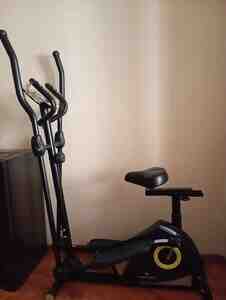 Bu şəkildə gördüyünüz fitnes avadanlığı — elliptik velosiped və ya kombinə edilmiş trenajordur. Bu aparat həm velosiped sürmə, həm də elliptik hərəkət funksiyalarını birləşdirir. Ev şəraitində məşq etmək üçün ideal seçimdir, çünki həm ayaq, həm qol, həm də bütün bədən əzələlərini eyni anda işləyir. İstifadəçi oturaraq və ya ayaqüstə məşq edə bilər. Ürək-damar sağlamlığını gücləndirir, kalori yandırmağa, çəki azaltmağa və dözümlülüyü artırmağa kömək edir. Səssiz işləmə sistemi sayəsində evdə başqalarını narahat etmədən istifadə olunur. Bu model rahat oturacaq və tənzimlənən tutacaqlarla təchiz olunub.