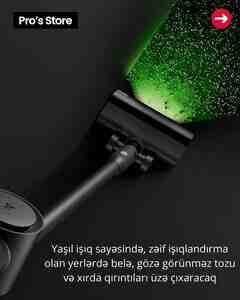 1150 Azn Brend: Roborock Sorma gücü: 210 AW Led: İşıqGeniş 140° əhatə bucağı ilə dəqiq və asan təmizlik İşləmə müddəti: 90 dəqiqə Toz qabı: 500 ml Filter: 5 mərhələli HEPA filtr H13 Başlıqların sayı: 4 ədəd Toz qabının növü: