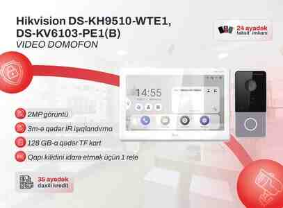 Hikvision DS‑KV6103‑PE1(B) + DS‑KH9510‑WTE1 – Video Domofon Dəsti (2 il zəmanət)