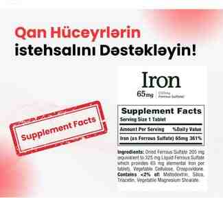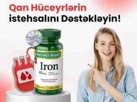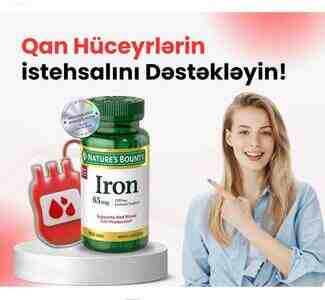 Amerika istehsalı Nature"s Bounty Iron 65 mg (Ferrous Sulfate 325 mg) — dəmir çatışmazlığının qarşısını alan, qırmızı qan hüceyrələrinin istehsalını dəstəkləyən ən çox seçilən premium dəmir kompleksidir.