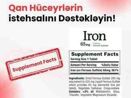 Iron 65 mg - Dəmir Nature"s Bounty. 100 həb. Made in USA