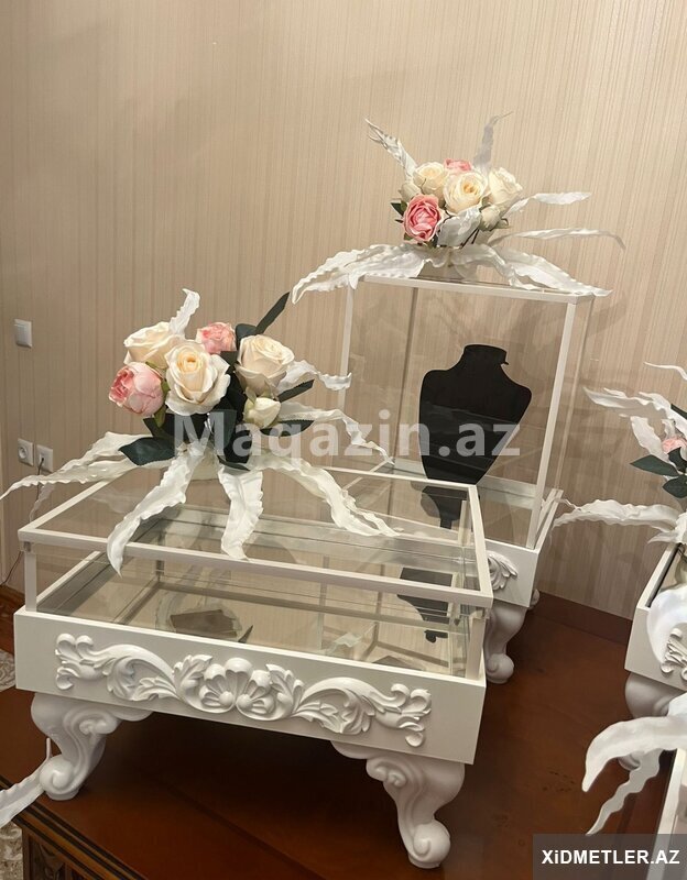 Mağazalar üçün vitrin rəflər satılır Divarlıq, ortalıq vitrinlər istənilən ölçü və rəngdə sifarişlə hazırlanır Rəng secimi mustəri tərəfindən olur Baslıq vitrinlər əlavə vitrinlərin sifarişi qəbul olunur Market