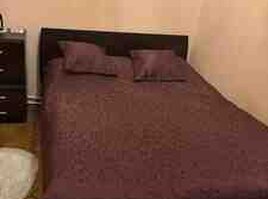- İkineferlik çarpayı (tünd qəhvəyi karkas, arxa dayaqlı), dəstdə uyğun örtük və 2 yastıq üzlü dəst