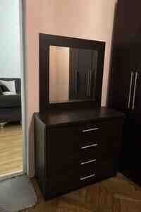 - Güzgülü komod: 4 çekmece, iri çərçivəli sabit güzgü