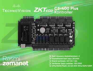 ZKTeco C3-400 Controllerlər vasitəsi ilə təhlükəsiz giriş və keçid nəzarətini təmin edən cihazdır. ZKBio Time və ZkBio CVSecurity proqram təminatı ilə integrasiya olunur.
