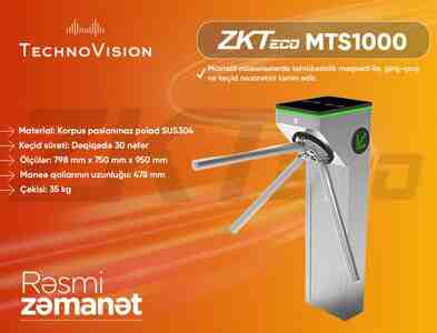 ZKTeco MTS1000 — müasir turniket sistemi. İstehsalçı tərəfindən turniketin üzərinə kart oxuyucularını inteqrasiya etmək üçün xüsusi planşetlər quraşdırılıb.