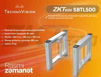 ZKTeco SBTL500 — müasir turniket keçid sistemi. Paslanmaz poladdan hazırlanmış, yüksək davamlılığı ilə seçilir. İstehsalçı tərəfindən turniketin üzərinə kart oxuyucularını inteqrasiya etmək üçün xüsusi planşetlər quraşdırılıb.